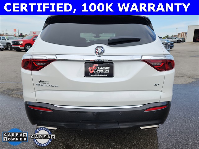 Luxury, technology, and family-ready versatility come together in the 2023 Buick Enclave Essence. This CERTIFIED SUV offers three rows of comfort with 7-passenger seating, perforated leather-appointed front bucket seats, and a 60/40 split-folding third row. The drivers 8-way power seat with lumbar support, heated front seats, and heated steering wheel ensure every journey is comfortable, while tri-zone automatic climate control keeps all passengers at the right temperature. Buicks hallmark QuietTuning with Active Noise Cancellation transforms the cabin into a serene space, even on busy highways.On the outside, sleek styling meets functionality with LED headlamps and daytime running lights, a hands-free power liftgate with projected logo, and the Sport Touring Edition featuring bold 20" gloss black wheels. Inside, the Sound and Sites Package adds a Bose premium audio system and an 8" Buick Infotainment System with navigation, Apple CarPlay, Android Auto, Bluetooth, and in-vehicle apps.Advanced safety and driver-assist features inspire confidence on every drive. The Enclave includes Enhanced Buick Driver Confidence technologies like Lane Keep Assist, Lane Change Alert, Side Blind Zone Alert, Forward Collision Alert, Rear Cross-Traffic Alert, Front and Rear Park Assist, and Front Pedestrian Braking. With the Technology Package, you also get Adaptive Cruise Control, Enhanced Automatic Emergency Braking, HD Surround Vision, Rear Pedestrian Alert, and a Rear Camera Mirror.Powerful, refined, and built for modern families, the 2023 Buick Enclave Essence is the premium SUV that elevates every drive. You can buy it today at Ferguson Superstore in Broken Arrow, OK 74012, where we make car shopping Upfront and Simple our best price, the first time.